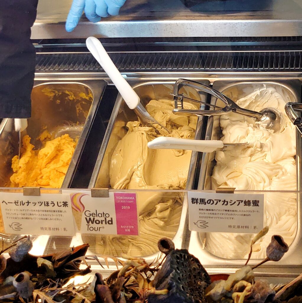 「わびさびや」では、卵を使わずに桐生市でとれた牛乳を使用したジェラートが販売されています。和素材と季節のフレーバーが特徴で、店内には10種類ものこだわりのジェラートが並んでいます。